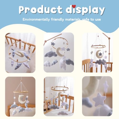 High-Quality Materials for Safety and Style Our baby crib mobile is crafted with premium felt and wood materials, ensuring both durability and safety for your little one. The soft, lightweight design is gentle enough for babies but sturdy enough to last as they grow. The smooth wooden frame and non-toxic, eco-friendly felt make it a safe and stylish choice for any nursery, offering peace of mind for parents.